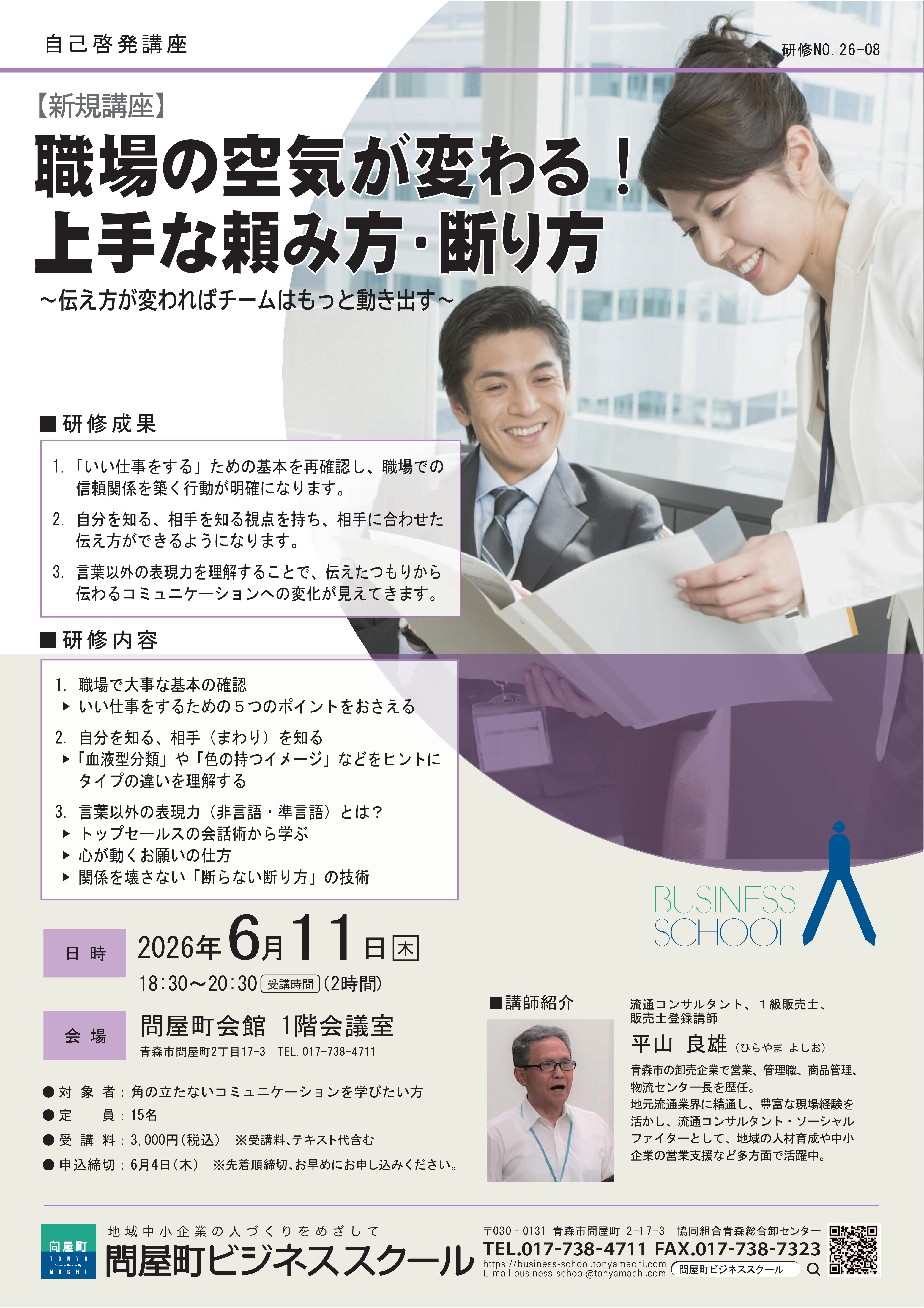 【新規講座】職場の空気が変わる!上手な頼み方・断り方