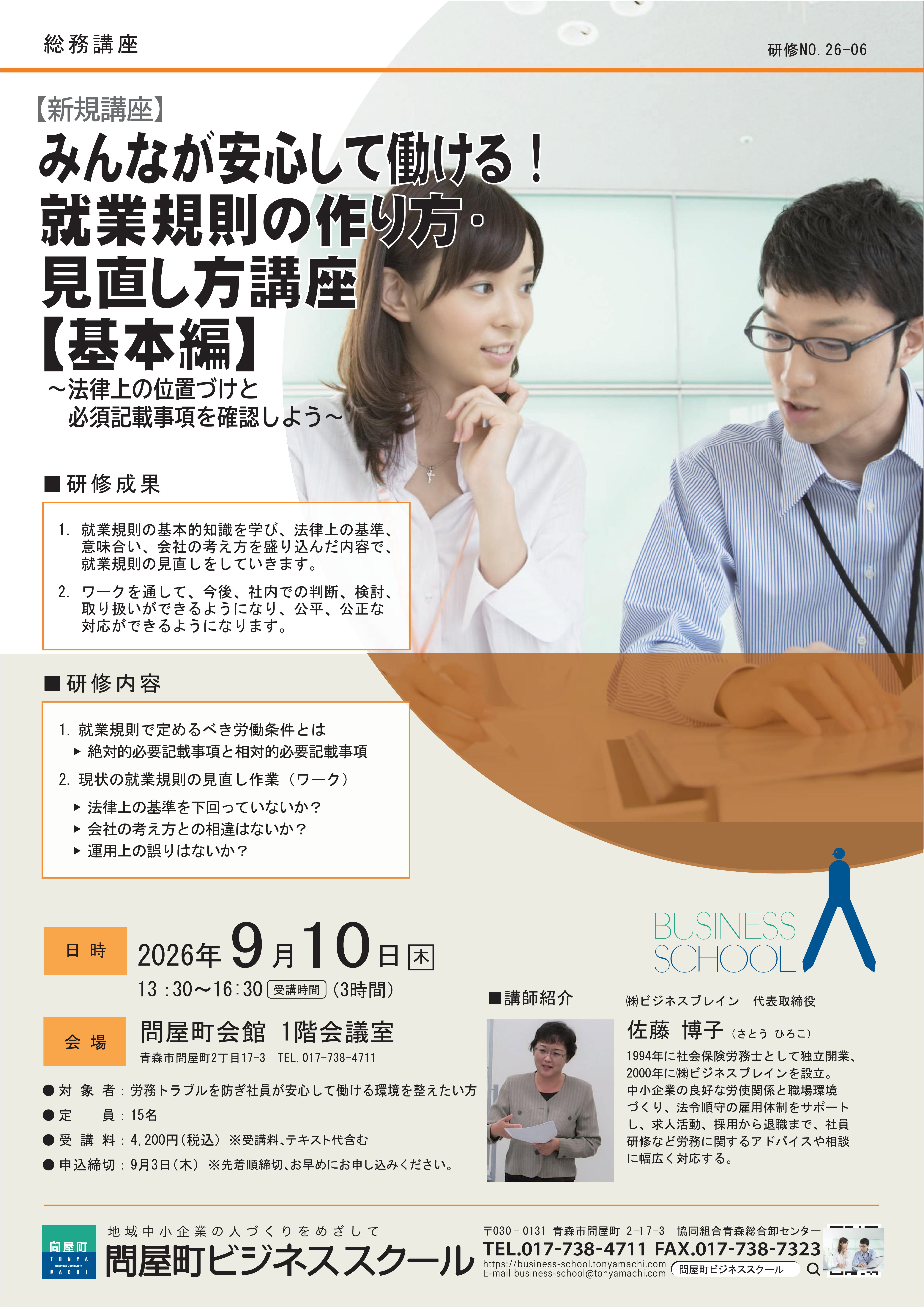 【新規講座】みんなが安心して働ける!就業規則の作り方・見直し方講座【基本編】