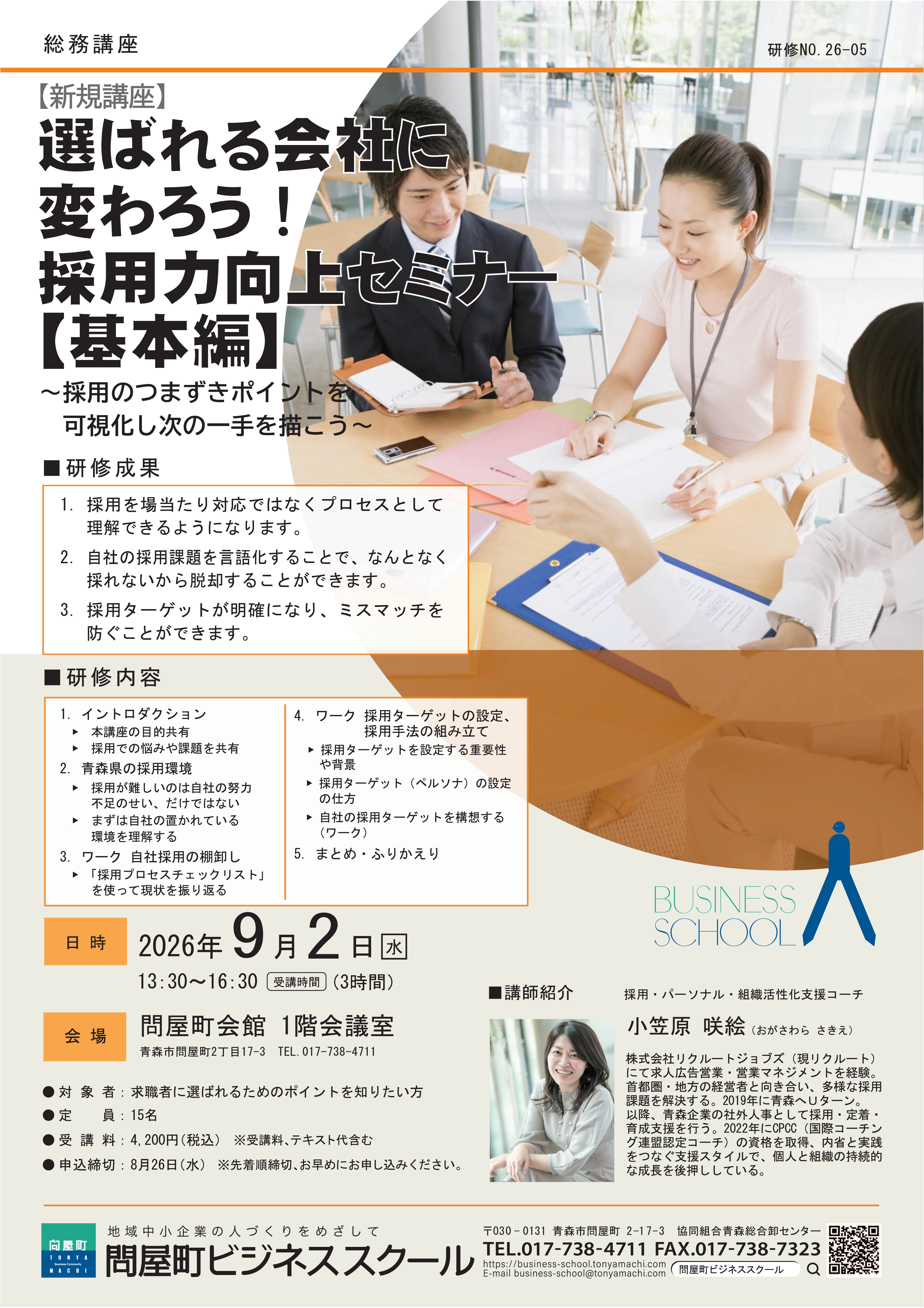 【新規講座】 選ばれる会社に変わろう!採用力向上セミナー【基本編】