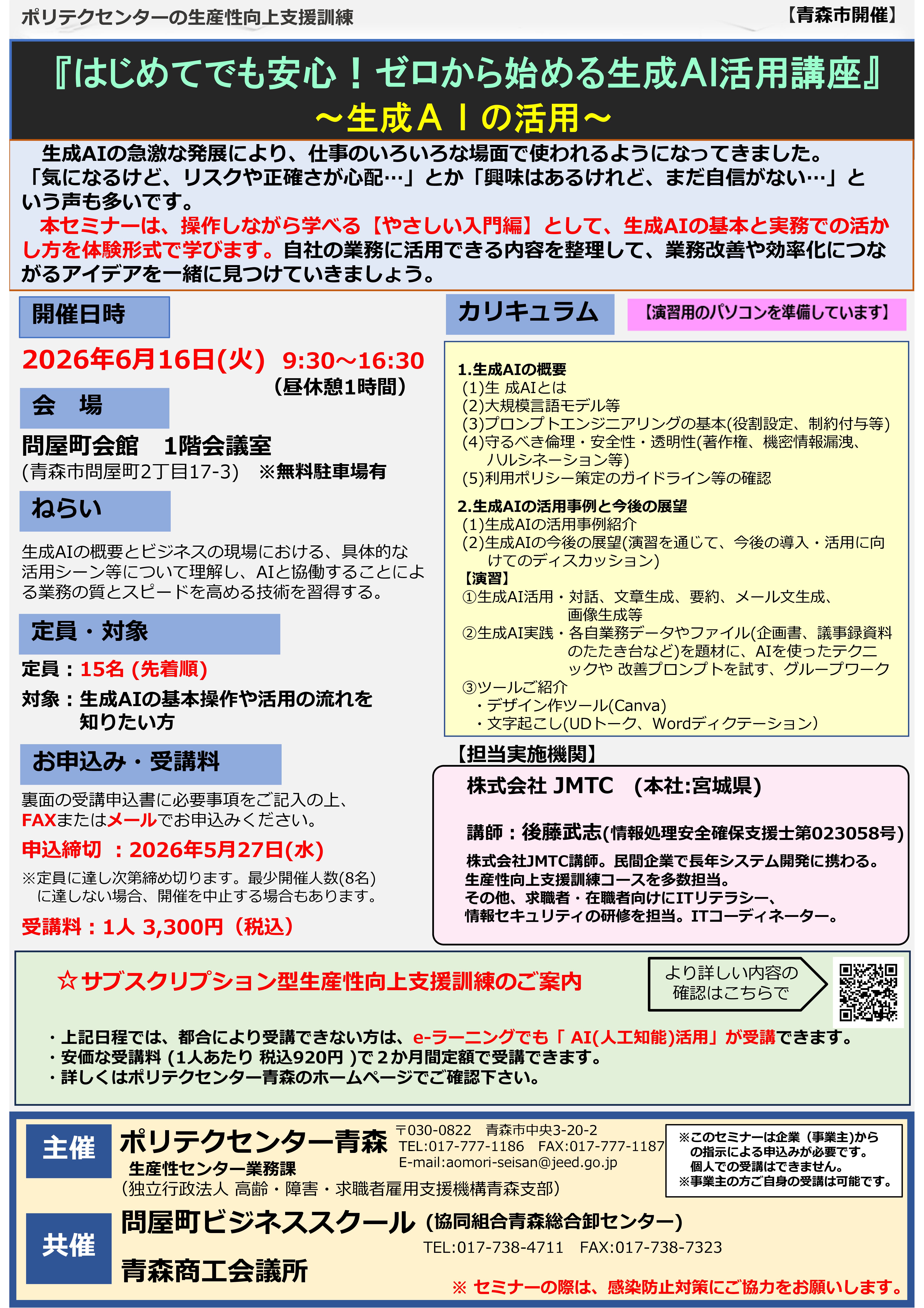 【共催講座】はじめてでも安心!ゼロから始める生成AI活用講座