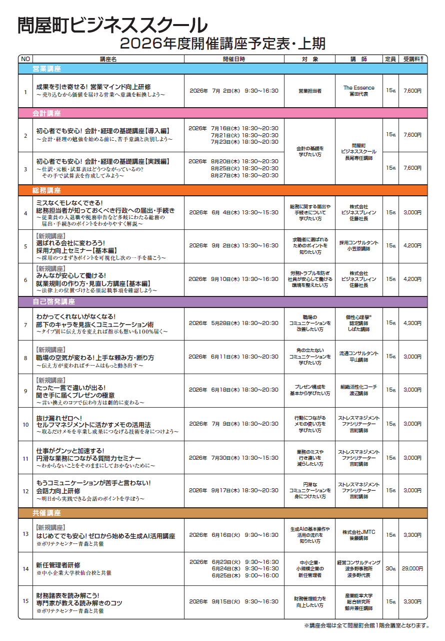 問屋町ビジネススクールでは新型コロナウイルス感染拡大を 防ぐため、2020年度5、6月に開催予定の講座を休講とさせていただきます。
