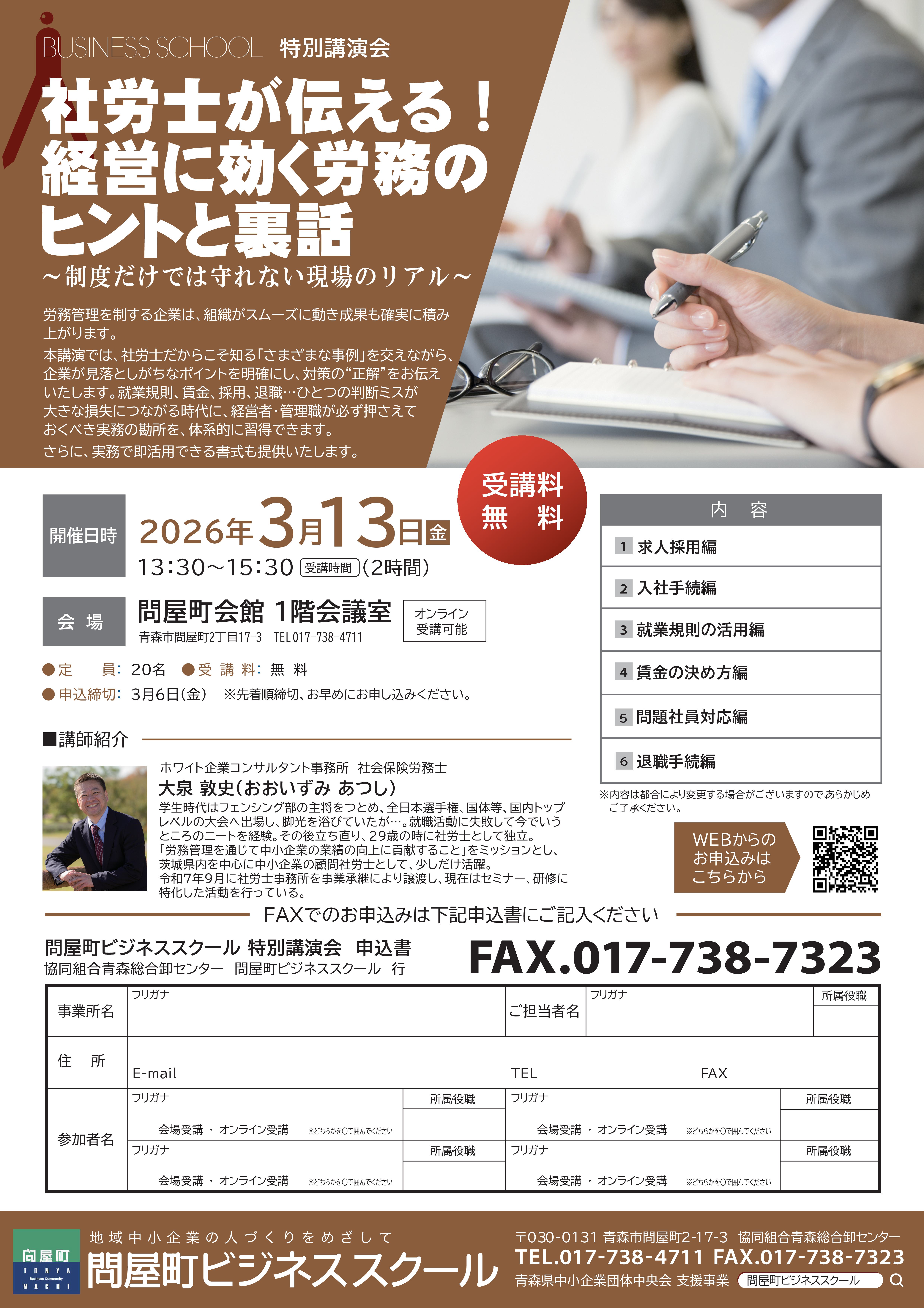 【特別講演会】中小企業の採用改善と人材定着セミナー